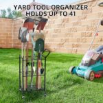 - Ideal Storage Solution for Garden Tools: This garden tool storage cart holds tall tools like rakes and shovels. It keeps tools upright and organized, preventing them from falling or damaging walls, transforming cluttered spaces into neat storage. And the yard tool storage rack is suitable for many occasions, such as garage, basement and shed to hold all kind of garden tools, farm tools, lawn tools and cleaning supplies like mops and brooms.