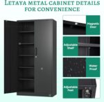 • 『High-Quality Metal』: Letaya metal storage cabinet with whole-in-one reinforced heavy gauge steel deluxe welded frame, 2 locking doors are also strengthened by with additional steel bars, whole steel frame thickness up to 0.8 mm, rugged and not easily deformed, plate adopted environmentally powder coated finish, Moisture proof,capacity to resist corrosion and rust,Can be used for a long time.